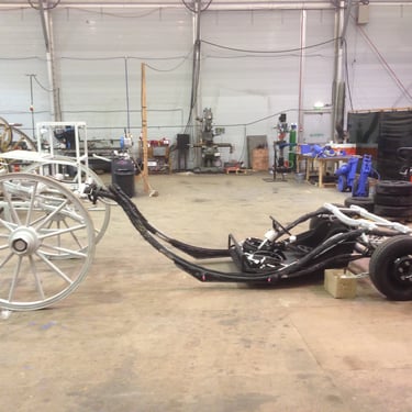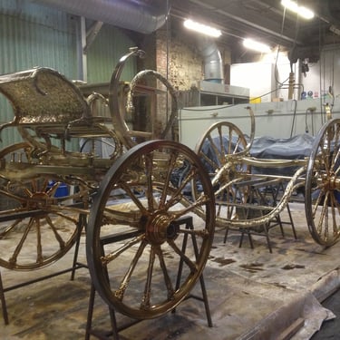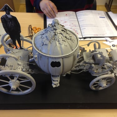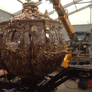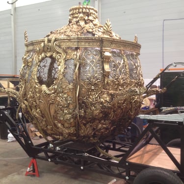 We worked closely with my good friend Stuart Heath from BGI Supplies who built the carriage from scratch. We rigged this carriage onto a towing rig with bellows as shown in the test footage below. Stuart also helped with the bendy Greenhouse that we made for close-up shots of Cinderella being pushed up against the glass.